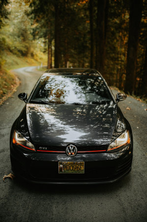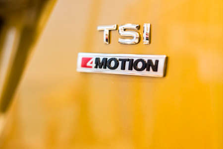 LUGO, ITALY - September 11, 2018: light enlightening Volkswagen logo on a car body