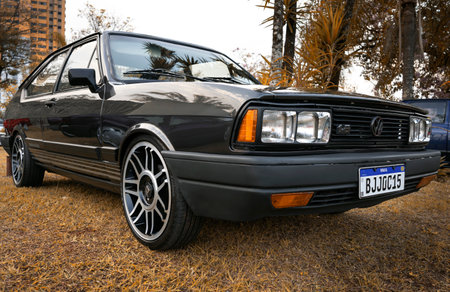 Vehicle Volkswagen Passat 1.8 1986 on display at a vintage car fair show in the city of Londrina, Brazil. Annual vintage car meeting.