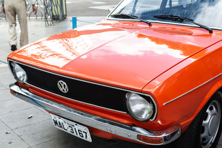 Salvador, Bahia, Brazil - November 1, 2014: Detail of the front of a Volkswagen Passat LS model at an exhibition of vintage cars in the city of Salvador, Bahia.