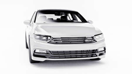 Attention to details. Particle view of modern luxury white car parked indoors at daytime.