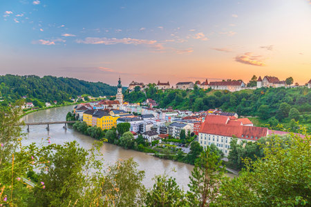 Burghausen downtown city skyline, cityscape of upper Bavaria town in Germany