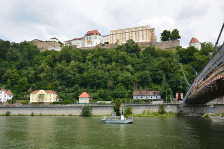 View from the old town of Passau over the Inn river to the Innstadt district and the Maria Hilf monastery on the Mariahilfberg