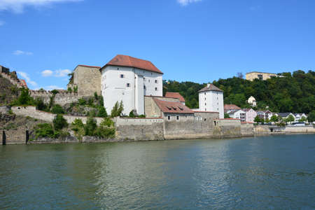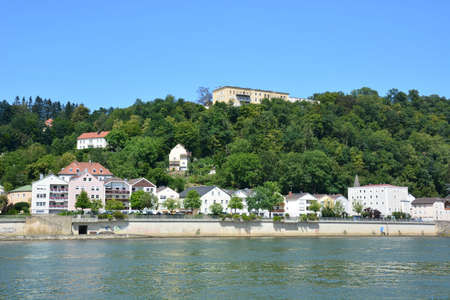 Beautiful old houses on the waterfront in Passau, Germany. Travel destination. Beautiful place.