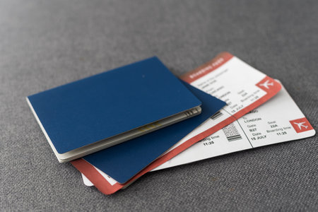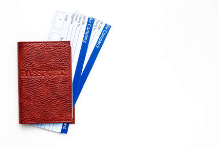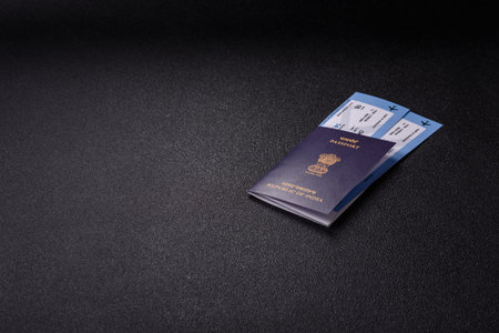 Indian passport and tickets for traveling, flying and doing business. India document, id for crossing the border