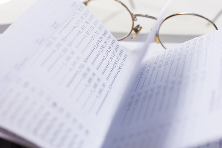Mobile phone on bills on the desk with eyeglasses, smart phone for payment or calculation, financial or tax concept