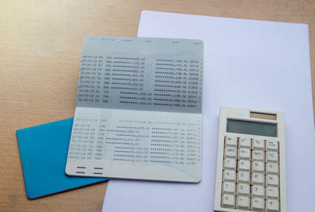 Bank book with pen and overlight. for planing earn money investment and saving money future for 2022 new year. finance and business concept.