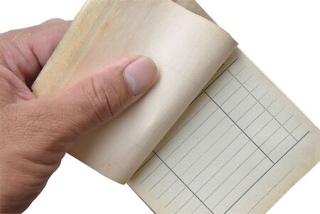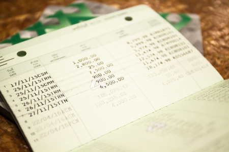 Hands of senior woman holding saving account passbook,checking the sum of money kept and check the amount of elderly pension and subsistence allowance deposits in a bank account,finance in retirement