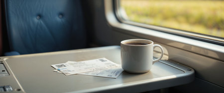 Person holding an old photograph, looking out of a train window, at a wooded landscape. generative ai