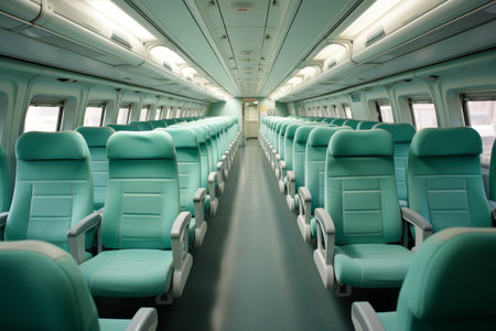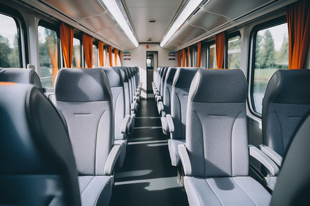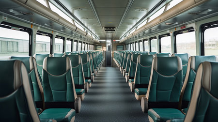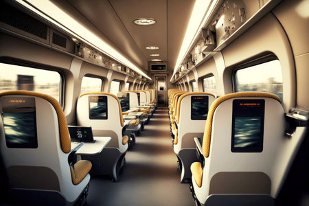 Contemporary interior of a passenger train with comfortable seating and modern design