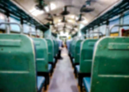Blur background of Interior of train in Hakodate, Hokkaido Island, Japan.