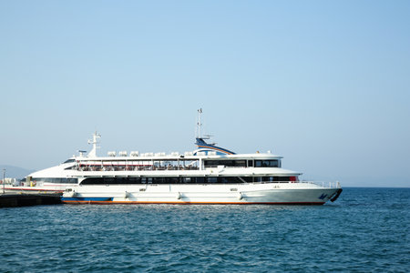 BUSAN,SOUTH KOREA - JULY 20, 2017: Haeundae cruise speed ferry sail across the sea in Haeundae, Busan South Korea.