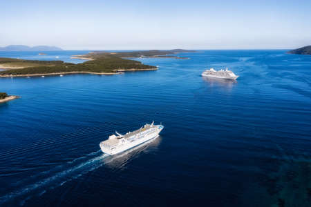 Croatia. Aerial view at the cruise ship at the day time. Adventure and travel. Landscape with cruise liner on Adriatic sea. Luxury cruise. Travel - image