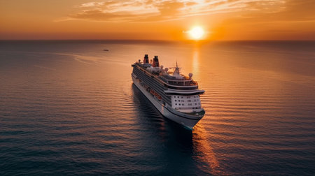 Luxury cruise ship sailing to sea on sunrise