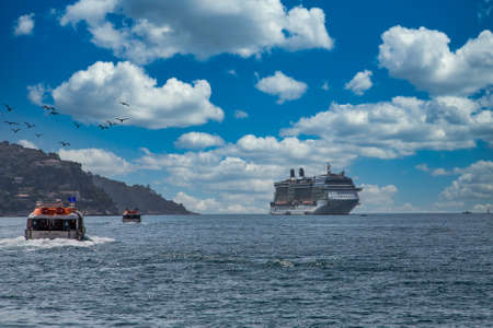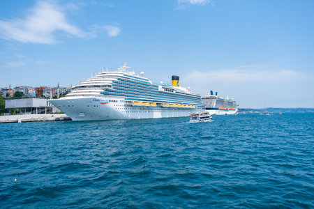 big cruise liner in the port of Istanbul in summer, Turkey.