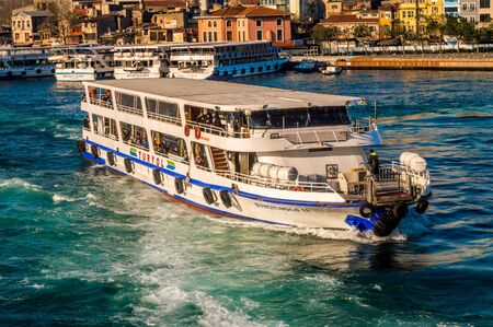 Istanbul, Turkey - January 06, 2018: Turyol ferry near Halic, a private ferry operator which owns and operates urban and international ferry service in western Turkey.