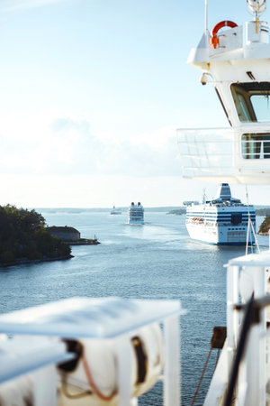 Lilla Vartan, Sweden - July 5, 2012 - Ferry Viking Line leave water area of Stockholm port.