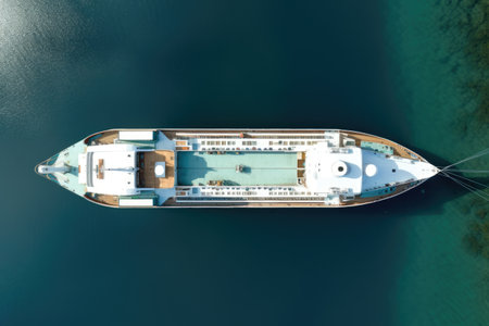 Aerial view of a luxury cruise ship in sea. Vacation travel concept. AI generated.
