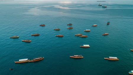 aerial view of the boats and dhow, stone town in Zanzibar