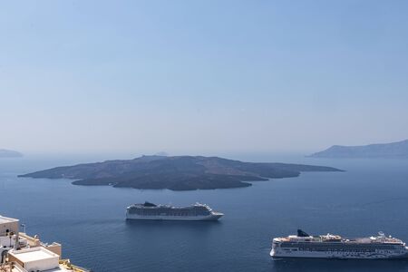 Sea and Volcano view from Fira the capital of Santorini island in Greece