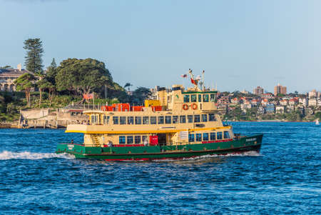 Sydney, Australia - November 7, 2014: One of Sydney's iconic ferries Fishburn steams across the waters of Sydney Harbour on its route between Circular Quay and Manly. The 28 vessels handle a total of 15 million passenger trips per year. sailing in the Syd