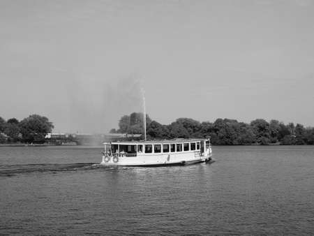 HAMBURG, GERMANY - CIRCA MAY 2017: Binnenalster (meaning Inner Alster lake) in black and white