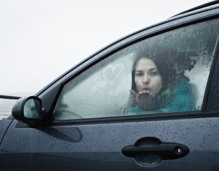 Teenage girl blowing kiss from car