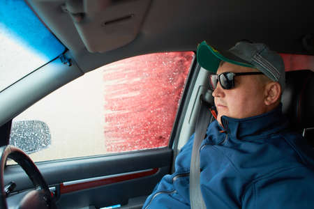 Driving car in bad weather conditions. Heavy rain.
