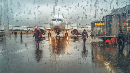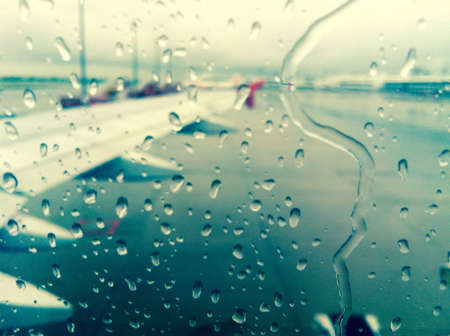 Airport aerodrome behind wet glass