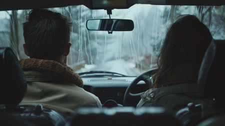 couple driving in a car, view of the car interior generative ai