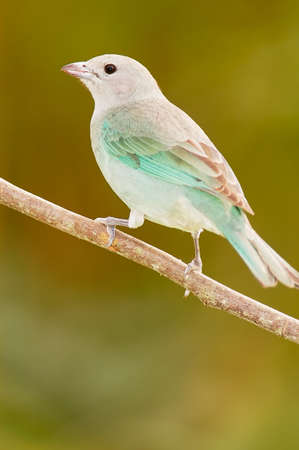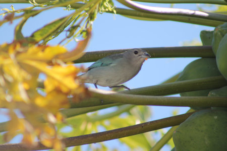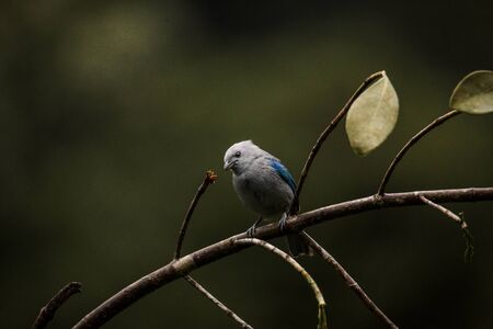 Blue Dacnis Dacnis cayana bird perching in a fern tree in the Atlantic forest of Brazil