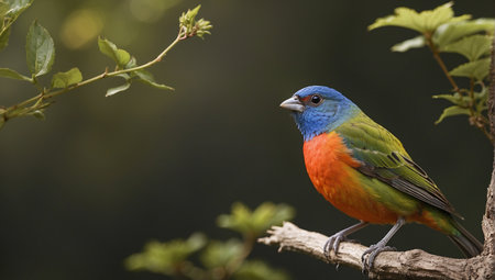 Vibrant painted bunting perched gracefully on a branch showcasing its colorful plumage