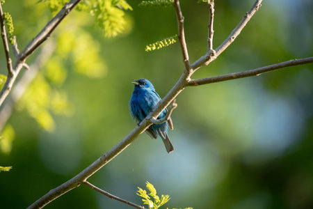 A selective focus shot of an indigo bunting cardinal perched on a branch