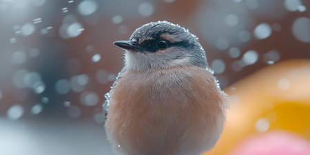 Adorable Small Bird Covered in Snow Flakes Winter Wildlife