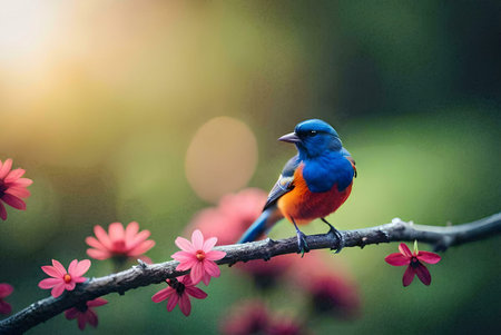 Generative AI : Beautiful Blue Bird Ultramarine FlycatcherFicedula superciliaris rest on ground in nature