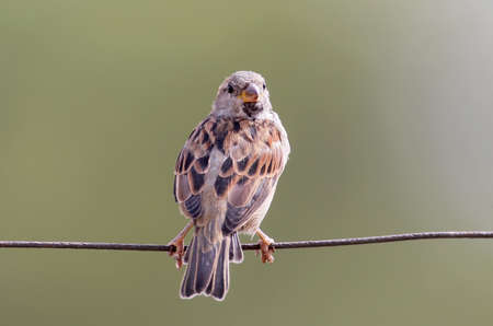 A female House sparrow. Sparrows are a family of small passerine birds. They are also known as true sparrows, or Old World sparrows, names also used for a particular genus of the family.