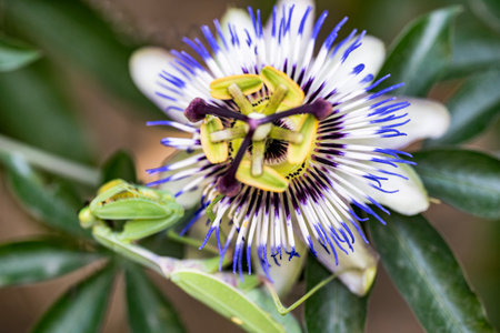 details of the beautiful flower of passiflora cerulea in summer