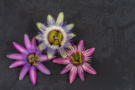 Tois Passionflowers of different colors - Medicinal flowers.