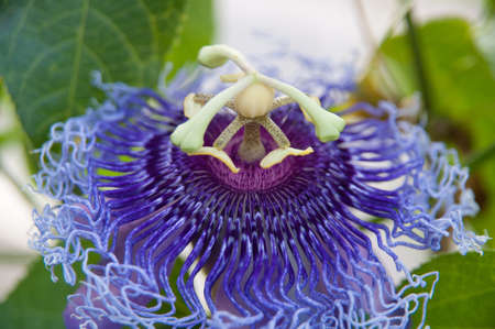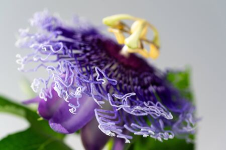 Purple Passion flower Passiflora closeup with petals and pistils.