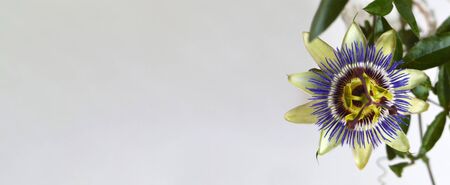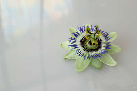 Blue passion flower. Floral background with copy space