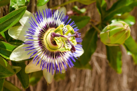 Passion fruit flower or Passiflora caerulea