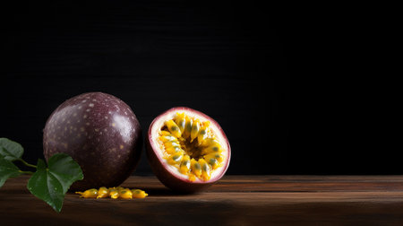 passion fruit on wooden with black background