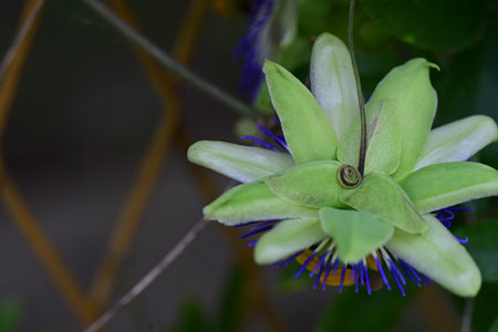 Beautiful blue passionflower (Passiflora caerulea) flower, natural detail