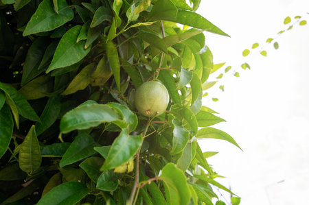 lots of raw and fresh passion fruit on the tree, passion fruit farm