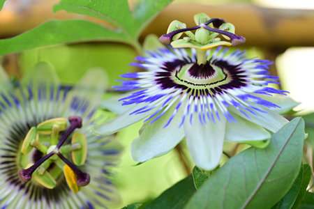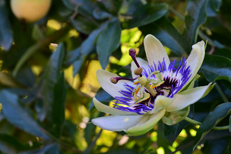 Beautiful blue passionflower (Passiflora caerulea) flower, natural detail