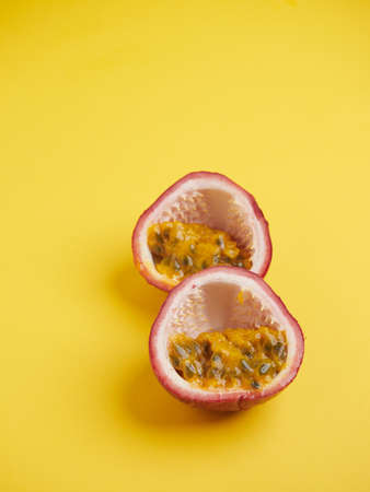 Passion fruit on the yellow background horizontal