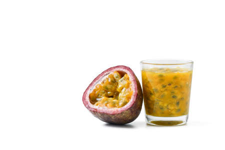 Juice of passion fruit isolated on white background