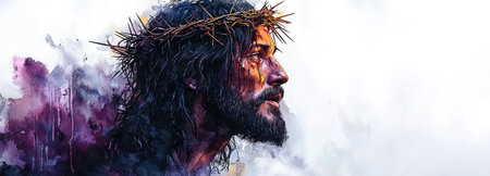 A striking watercolor depiction captures the essence of Jesus with a crown of thorns, ensuring a powerful expression of sacrifice and spiritual significance.