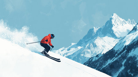 Thrilling Skier Dropping In - A Captivating Illustration. Generative AI