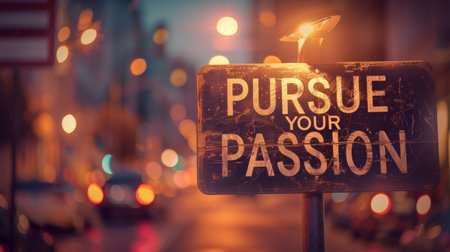 Motivational quote pursue your passion on blurred abstract background, success concept.