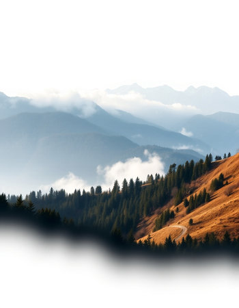 Foggy mountain landscape on a sunny day. Carpathians, Ukraine, Europe.